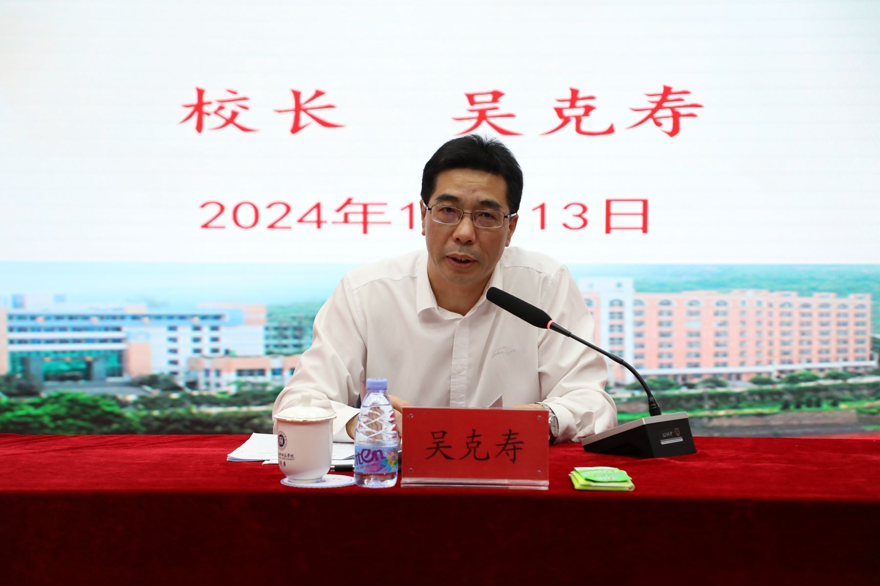 吴克寿校长指出,要深刻理解和把握高等教育分类发展的任务要求,紧扣我校应用型高校的发展定位,聚焦主责主业,走特色发展、内涵发展、高质量发展道路,谋划和推动明年学校的重点工作任务。他要求广大干部、教师提高政治站位,深入学习贯彻党的二十届三中全会精神、全国教育大会精神、习近平总书记在福建考察时的重要讲话精神,结合贯彻落实省委十一届六次全会部署,增强忧患意识,强化使命担当,立足本职,砥砺奋进,实干笃行,在深化学校综合改革、推进学校事业高质量发展中展示新作为,为将学校办成属地老百姓“想得起、用得上、靠得住、信得过、离不开”的区域一流多学科、综合性、应用型大学而不懈努力。