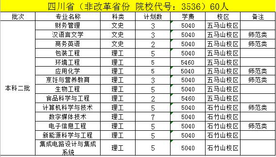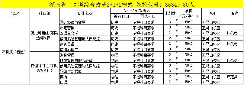 注:1、所有专业均为全日制本科专业,学制四年;