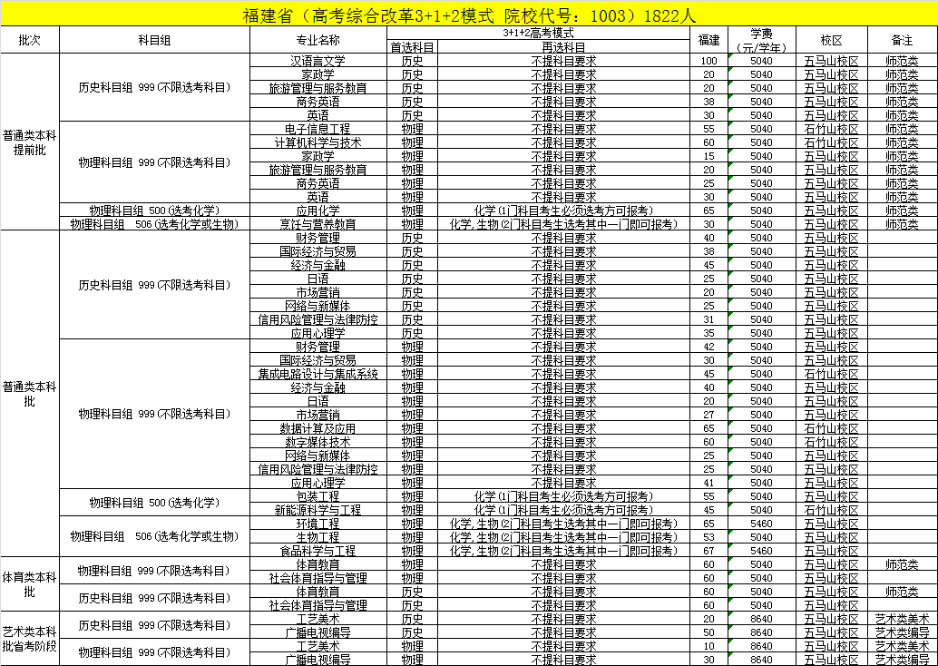 经省教育厅核准,我校2021年普通本科招生专业29个,普通本科招生计划总数为2211人。其中,福建生源1822人、省外生源389人;师范类770人(提前批650人、体育本科批120人)。