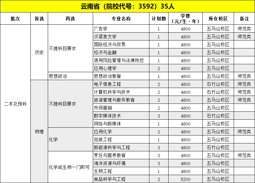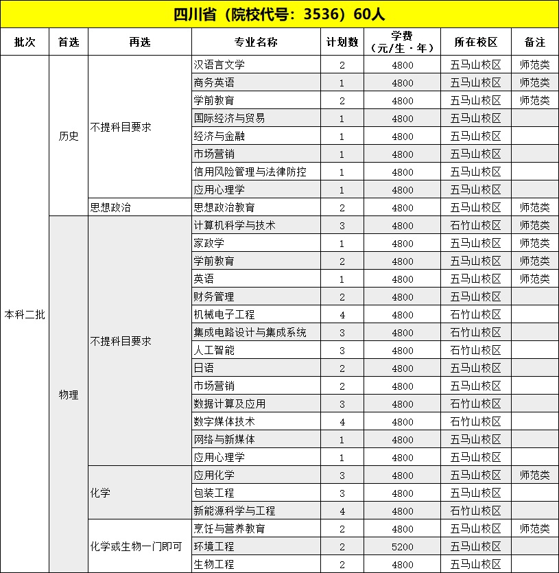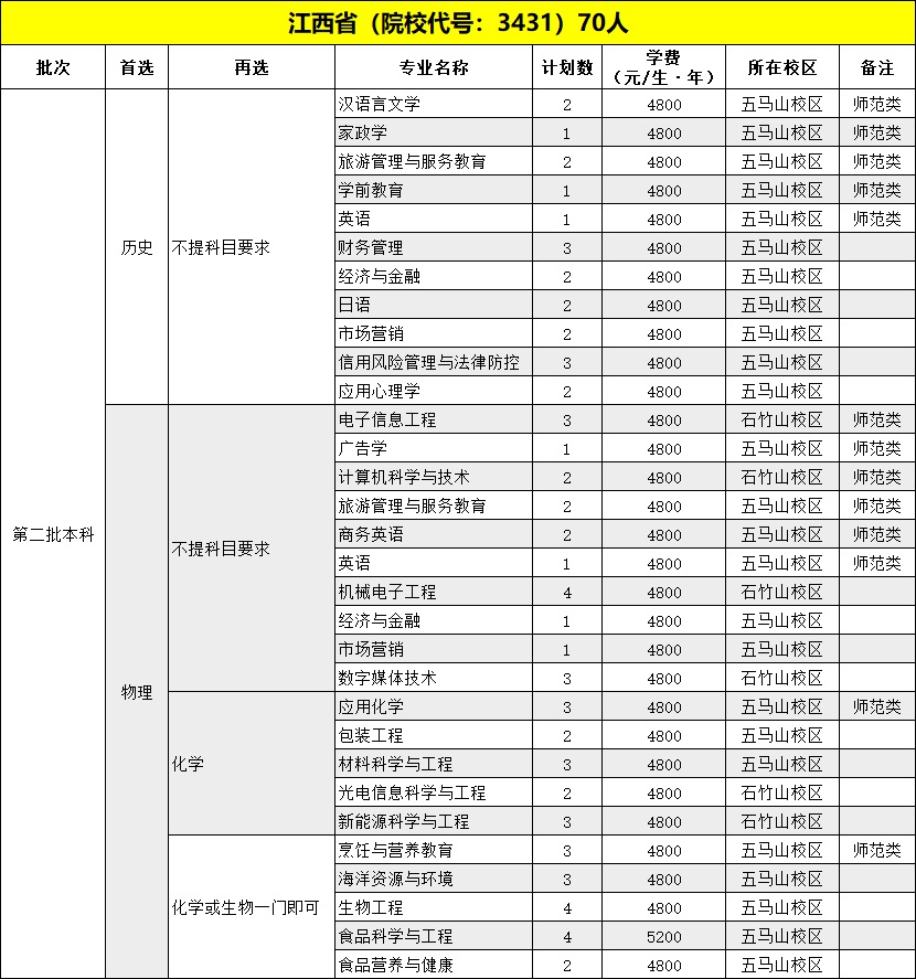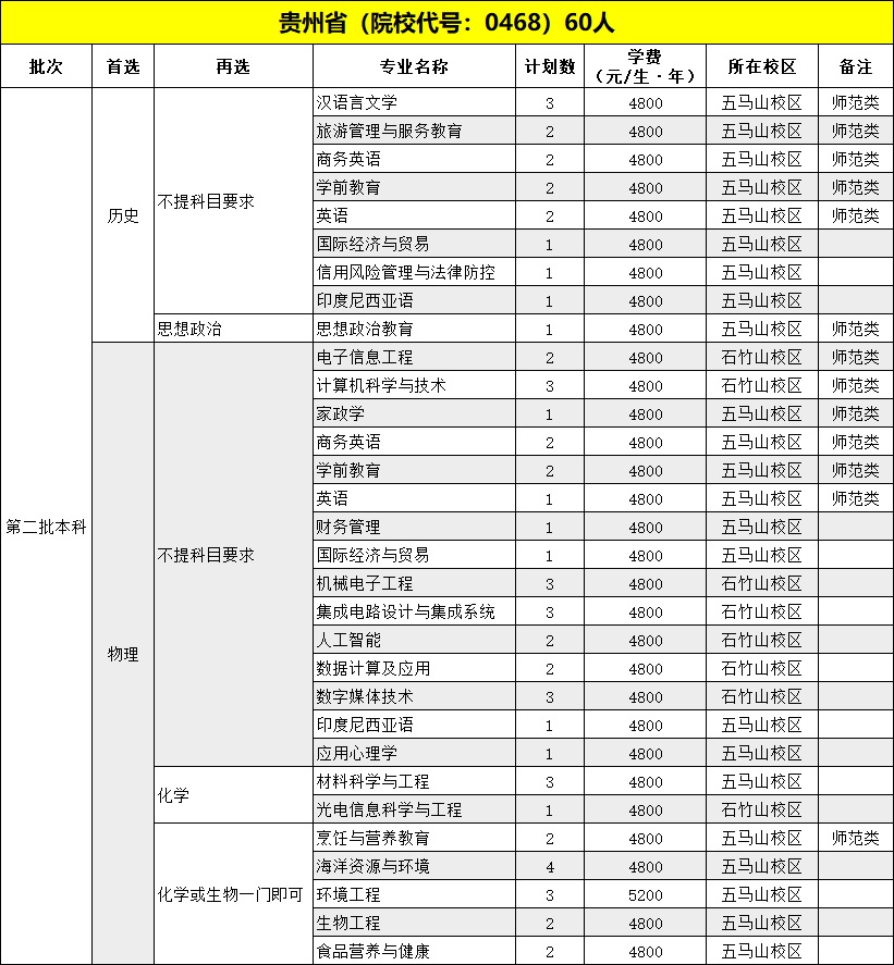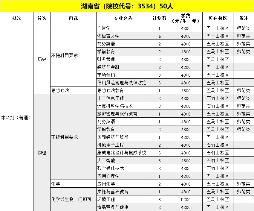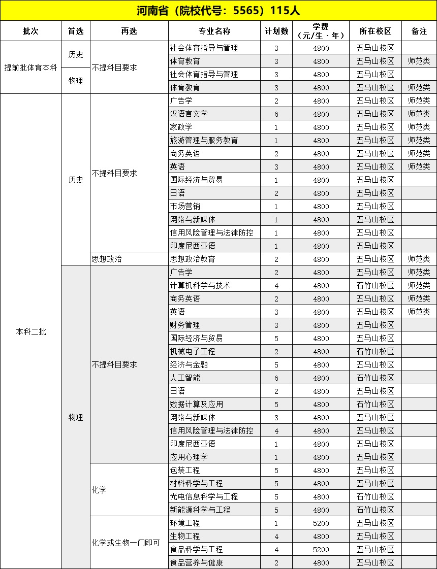 新增:思想政治教育、光电信息科学与工程、食品营养与健康、印度尼西亚语等4个招生专业。